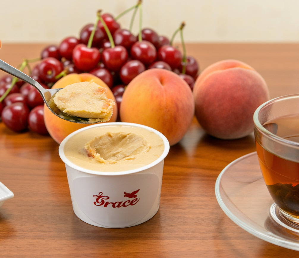アールグレイジェラートと福島県産白桃の香り豊かな風味が、上品にマリアージュしました。