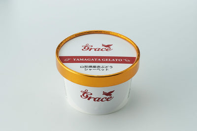 山形県産のマスカットベリーAのぶどうを使用したシャーベットです。マスカットベリーAは主にワインの加工用として有名。ワインに使われるだけあり、香り・甘味が抜群です。天然の鮮やかなぶどうの色が映えるシャーベットをご堪能ください。
