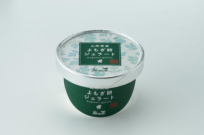 山形県産よもぎに山形県産コシヒカリの米粉を加えることで、もちもち感を表現しました。よもぎは5月から6月に収穫した青々とした色と香りの強い時期に収穫したもののみを使用しています。冷たいよもぎ餅をイメージして作った和風ジェラートです。