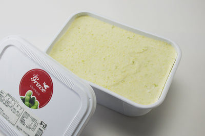 秘伝豆は、山形県を代表する枝豆。香りも旨味も抜群です。そんな豆をずんだ餡のように粒を残して、ジェラートに仕上げました。芳醇な味わいと粒の食感をお楽しみください。シェイクは、ずんだ餡にジェラートと牛乳を合わせて、ミキサーにかければ完成。ずんだ餡はそのままでも美味しく召し上がれますよ。お餅のトッピングもおすすめです。